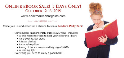 It's time for the semi-annual Bookmarked Bargains ebook sale again! Dozens of ebooks are available for free or at drastically discounted prices! PLUS, BB is giving away a Reader's Party Pack worth over $175! You don't want to miss this! Hop on over to Bookmarked Bargains now to enter the Rafflecopter giveaway, and while you're there, pick up a few awesome books on sale!