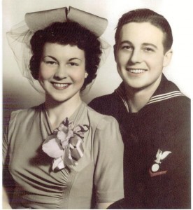 Immediately following the ceremony they took a bus downtown to a photographer to have their wedding portrait made. The honey moon was a night in a San Francisco hotel. Then they both went back to work, he on a minesweeper and she in the office of a shipyard.