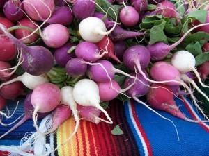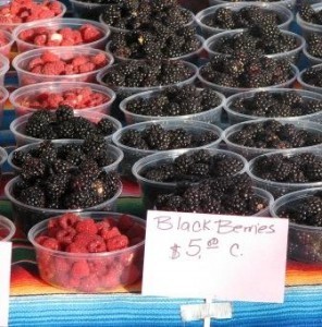It’s that time of year in New Mexico. My friend Jo-Ann and I got up early yesterday morning and went to The Station for coffee and then wandered down through the railyard to the Santa Fe Farmers’ Market. We bought too much stuff, as usual…fat red radishes, a bouquet of oak leaf lettuce, perfect snow peas, a new (to me) variety of apple called Wolf River that I haven’t tried yet, blackberries that are so plump and ripe I’ll probably be forced to eat them in the next two days.