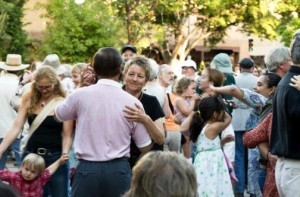 Shake Russell played last night at the Santa Fe Plaza bandstand. We asked some friends to go with us and it was a great evening. The rain held off, the temperature cooled down, the Plaza was filled with people, sharing picnic suppers, dancing, singing along. There were kids and dogs, tourists and locals.