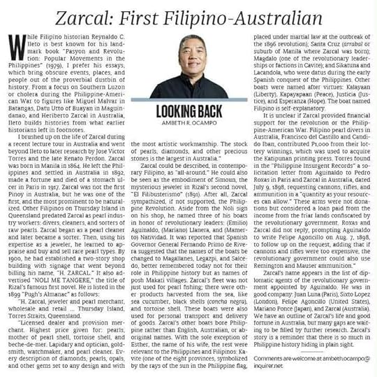 My Inquirer column today on Heriberto Zarcal who is not well known because he Madi his fortune in turn of the century Australia