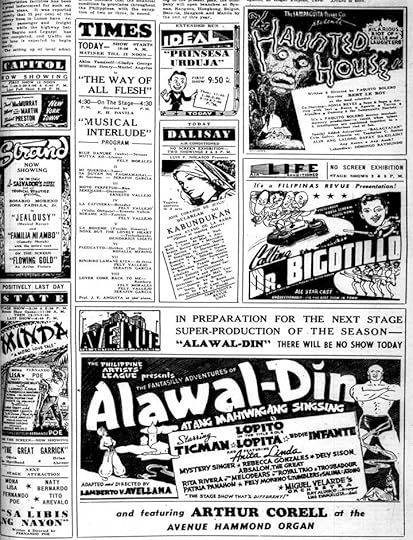 On November 20, 1942 the Tribune published the films showing in Manila. Almost all were locally produced, from local history like "Princess Urduja" to comedies like "Calling Dr. Bigotillo" and "Haunted House" the movies were a welcome distraction from the horrors of the war.
