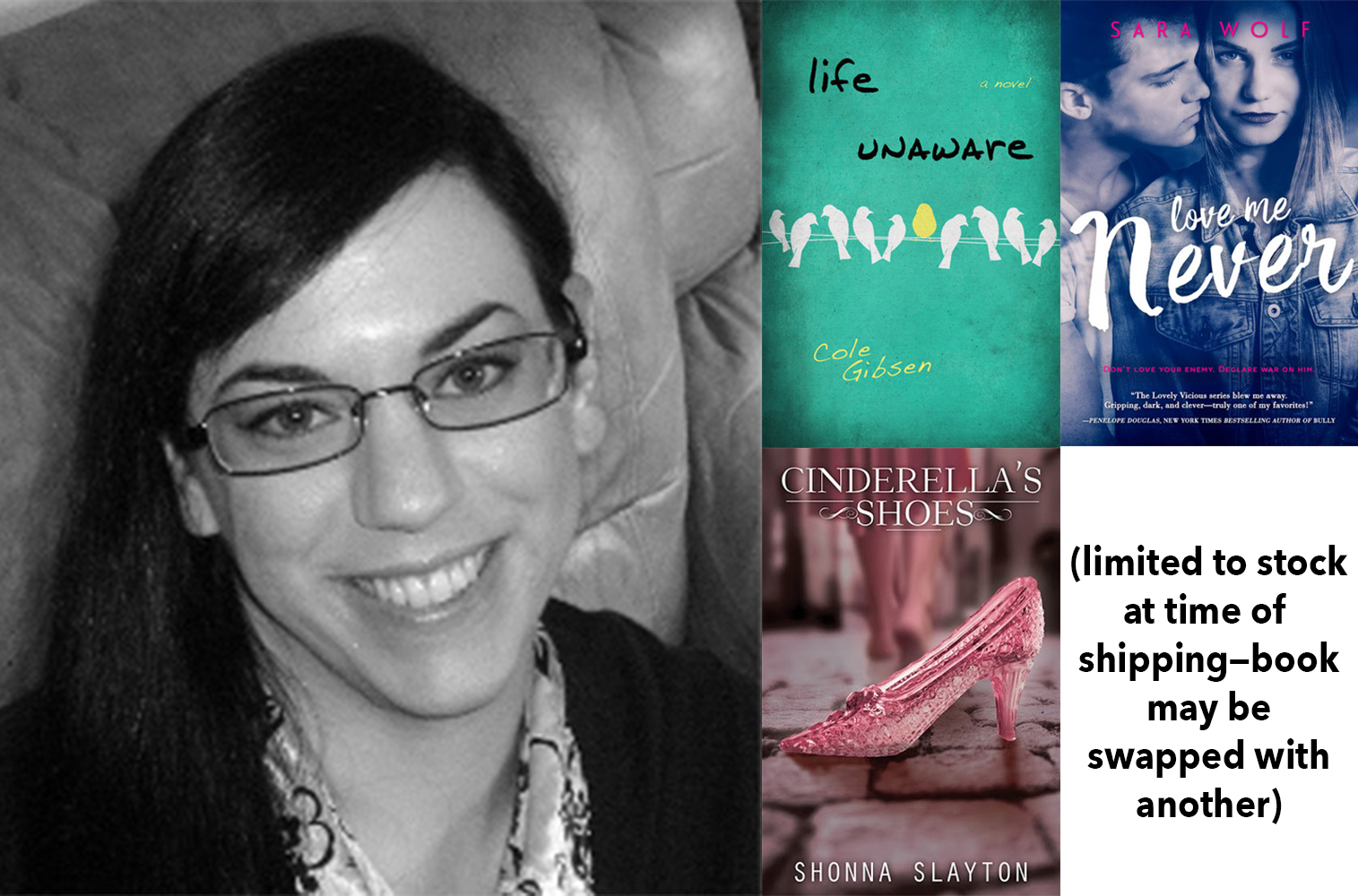 Sword and Verse by Kathy MacmillanSigned The Last Great Adventure of the PB&J Society by Janet Sumner JohnsonSigned Emerge by Tobie EastonSigned The Last Cherry Blossom by Kathleen Burkinshaw (releases in August) Devil and the Bluebird by Jennifer Mason BlackSigned Assassin's Heart by Sarah AhiersARC of The Girl Before by Rena OlsenSigned Beyond the Red by Ava JaeLove, Lucas by Chantele SedgwickLife Before by Michele BaconThe Wanderers by Kate OrmandDivah by Susannah AppelbaumThe Fix by Natasha SinelLife Unaware by Cole GibsenLove Me Never by Sara WolfCinderella's Shoes by Shonna Slayton