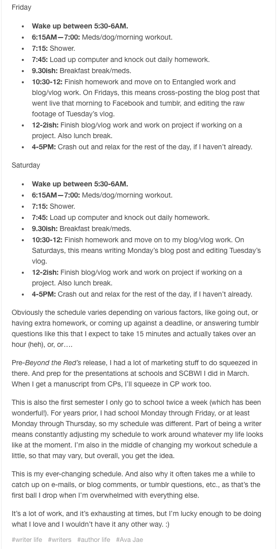 Author @Ava_Jae shares her current weekly schedule & asks who does/doesn't use schedules. Do you? (Click to tweet)