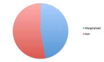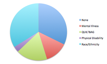 So of the 53 books I've read so far this year, 33 of them included some sort of marginalized representation, and 20 did not. I've been making a concerted effort to read more books with marginalized characters this year, so I was pretty happy to see that ultimately, it looks like my efforts mostly paid off.