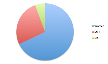Now looking at the authors, I read 36 books written by women, 14 written by men, and 3 written by non-binary authors.