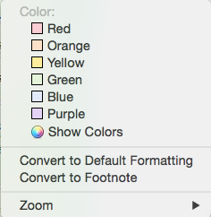 The steps for changing colors are pretty easy. You right click whatever comment you want to switch the color of and then choose from the following menu.
