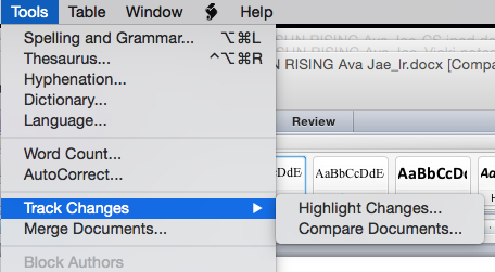 Tracked changes will be a mess. So this is a more significant downside—you’re going to lose a lot of the tracked changes your CPs suggested, both because they get messed up in the Word merge, and because Scrivener doesn’t recognize tracked changes. Instead, Scrivener will automatically try to implement the tracked changes that remained intact in the merged document, which is a bit of a headache because it doesn’t implement it correctly and it’s not marked, so you kind of just have to catch them.