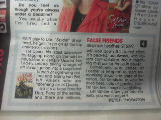The Sun has just given my book False Friends a brilliant review. False Friends got to Number 4 in the Sunday Times hardback bestseller list, too, which also cheered me up no end!