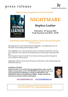 Nightmare - the third book in the Jack Nightingale supernatural detective series will be published by Hodder and Stoughton in the UK next week - following on from Nightfall and Midnight.