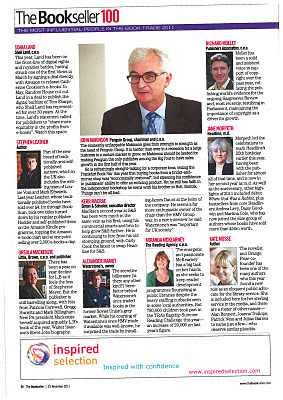 I made the Bookseller magazine list of 100 Most Influential people in the UK book trade. How cool is that?