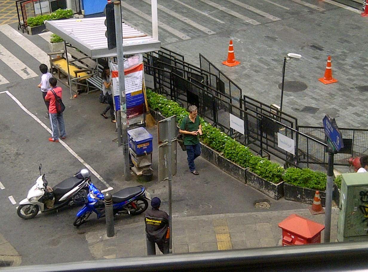 The guy on the footbridge was indeed one of the team, but to be fair I only spotted him because I was looking. The two guys I had made on the Skytrain - Orange Shirt and Hearing Aid - were nothing to do with the surveillance team, they were just civilians.