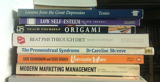 Still, there it is, I was tempted and found a less than rare item in the book section, Harbins “Teach Yourself”. I always buy these (£1 seemed reasonable) in order to give away to beginners at demos and meetings. What caught my eye enough to warrant a photo was the company that this book kept. The books weren’t seemingly filed by category, but whilst origami is not usually to be found in “self-help”, it seems as good a way as any to cure low self-esteem ;)