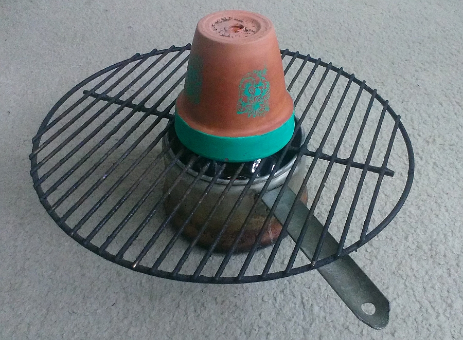 Any idea what you're looking at in the photo? No? It's a handy-dandy little improvised space heater, the idea of which I got from Brugger, who is something of a dilettante in matters of do-it-yourself and crafty things, last year when the power went out. You take a heat-conducting basin of sorts, a grill or other surface that allows air to pass through; a small candle, which rests on the grill; and a clay pot. Then you set them all up to create the contraption shown above. Right now, I'm sitting with this apparatus next to my chair in my office, and the heat radiating up through the hole in the base of the pot, while hardly considerable, is definitely noticeable.As it is, here I sit, snow and iced in, my car broken, and my heat pump suddenly gone out. For the moment, at least, I still have electricity, but this is Greensboro, so I have no idea how long this fair fortune will continue. Don't know what happened to the heat pump, but it doesn't appear to be the circuit breaker or the fuses. Had a similar issue just a few months back, so I shall be taking it up with Central Carolina Heat and Air, whenever they can get someone out here. I know it won't be today, so I'm looking forward to at least one very cold night.