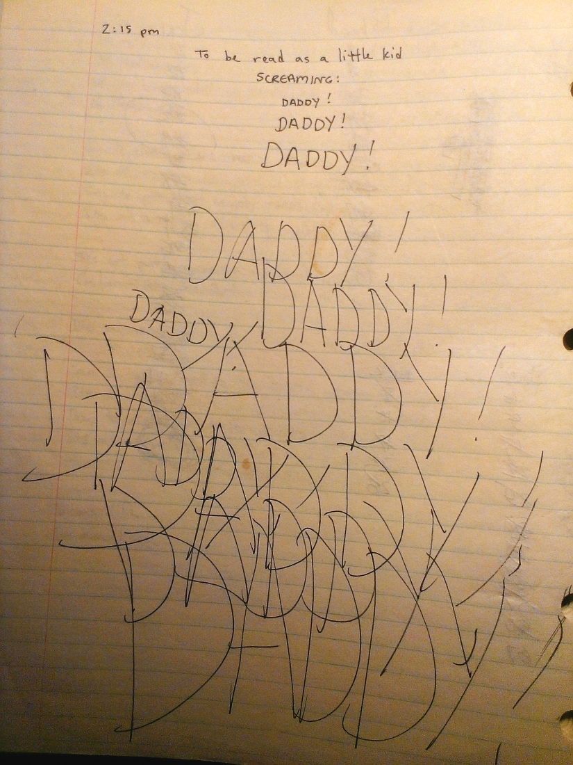 From the mid 1970s through the late 1980s — even into the 90s — I managed, documented, and illustrated my life via a succession of spiral notebooks, most of which I've kept to this day in the deepest, darkest recesses of the vault. This evening, a fragment of the lyrics to an old song I wrote, probably in 1983, sprang to mind, and I got it into my head to try to find them in their entirety. I figured if those lyrics exist anywhere, they'd be in one of those old notebooks. So I ventured into the vault, grabbed a bunch of the notebooks (a portion of which are shown above) and commenced to searching.I had almost forgotten how many hundreds of thousands of words exist in those pages. Some go back to high school, when I doodled pictures and wrote things that almost resembled stories. Most are from college and post-college days, many chronicling dreams I had (in those days, analyzing and learning to manipulate the events in dreams was a hobby of mine). Looking at them tonight, I found some of the descriptions vivid enough to jog actual memories of those dreams. Some pages are random musings — thoughts and observations from whatever chapter of life I was living at the time. The page reproduced below indicates I had apparently encountered a child somewhere.