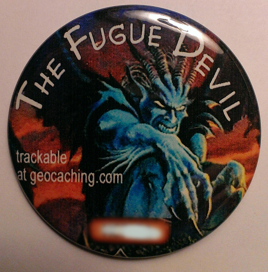 Ms. B. looking a little dangerous herselfThe business wasn't terribly ugly, but the Fugue Devil did appear last night. Ms. Honeychile not only placed a new cache called "Fugue Devil" near the Bethania Village Mill Shoppes, where the event was held, she also created a set of trackable buttons bearing the beast's image as it appears on the back cover of my collection Other Gods (art by M. Wayne Miller). These turned out to be so nice that, as an impromptu door prize, I decided to offer up one of my very few copies of the original edition of Fugue Devil & Other Weird Horrors , published by Macabre, Inc., in 1992 — long out of print and exceedingly rare. When I drew the name of the unlucky winner, who should it turn out to be but Mr. Tom "Night-hawk" Kidd — at which time a certain spontaneous expletive came unbidden to my lips. (No, I don't have Tourette's or anything; it's merely my involuntary response to insurance men.) I do hope no one was offended! (Sorry, Pastor Jay!) In any event, congratulations to the old man, and may he enjoy his prize without an accompanying visitation.