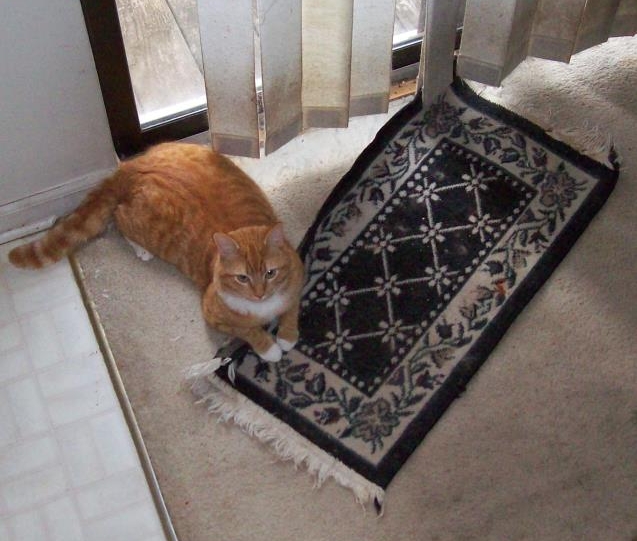 If you visit me on Facebook, you've no doubt met Droolie. Droolie is my home decorator. Back in December, he came round to my front porch and wouldn't go away, so, after a good faith but ultimately futile effort to find him a decent home, I took him in, fed and clothed him, got him his shots, and had him properly fixed. In no time at all, not only did he begin to redecorate my home, he inspired Chester, Frazier, and Dusty to help out. These days, coming home from work is always a new adventure. Sometimes I can't even get in the house because they've bunched up a rug and used it as a wedge behind the front door. More often than not, the tablecloth on the dining room table is just plain gone, and occasionally the floor is littered cat toys and other paraphernalia that I haven't seen since 1994. An industrious boy, this Droolie.