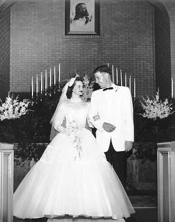 Mom and Dad before I was even a glimmer...My dad passed away. Complications from severe diabetes, which he'd had for most of his adult life. If he'd been able to avail himself to the refined medications and general expertise we have about the disease today, he'd likely still be with us. He simply could never control his blood sugar, no matter how precise his regimen. His dosage of insulin and diet might be exactly the same every day for a week, but his blood sugar still fluctuated madly day after day. I remember some of the violent insulin reactions he had; they were terrifying. Worse than epileptic seizures. Violent. Horrifying. Frequent. Thank ye gods, Dad was able to retire from a 30-year career with Dupont at age 52 — younger than I am now — and have some quality of life before the disease destroyed his body.