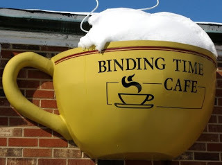 That's right, a dingy-dang book signing, on Friday, March 22, 2013, 3:00–5:00 PM, at Binding Time Cafe & Bookstore, 1115 Spruce Street, Martinsville, Virginia 24112. Stop in, meet the old man, and check out his latest novel, The Monarchs , among others. Binding Time is a cozy cafe that specializes in delicious food — and a fine selection of books. If you're in the area, do come round for a pleasant... and very likely frightening... afternoon in Martinsville! And for you geocachers out there.... Martinsville has a crapload of caches just waiting for you. I should know — I put a fair mess of them out there.