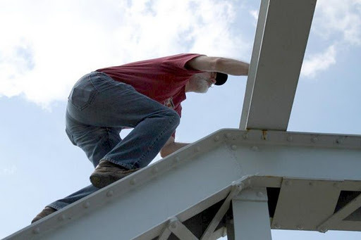Rodan signs log on the trestle. Rodan getting down is the fun part.