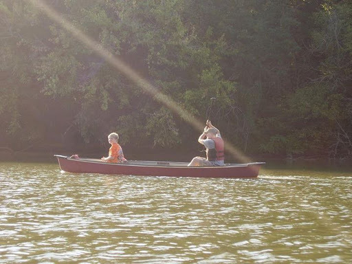 Left work a few minutes early and booked up to Danville to meet up with cachers Homestyle, Homekid, and HD JP for a canoe trip up the Dan River. Spent several hours out on the water, paddling hard, and hunting a couple of caches that can only be accessed by boat. Made a short hop over to a nearby island for the first one, "3-Dan Island" (GC1YMD0), which was a quick find, then set out on a mile-and-a-half paddle upriver to hunt "Catch a Cache" (GC2Y8N1), which was guaranteed to pose a challenge, though we came out with just the tools for the job. Once we got to ground zero, though...disappointment! No sign of the container anywhere. Next thing you know, we're on the phone with the cache's one previous finder, who told us just what to look for, but this only confirmed our idea that the container is just plain gone. What a bummer! Ah, well...at least it was an excellent day to spend out on the river. We got back to the cars just as darkness fell; then it was off to the nearby Ham's restaurant, where I went to town on one of their famous bison burgers. Mercy, them critters are good! And now I'm feeling a little bit of the soreness coming on. Not much, just enough to let me know that my bones are somewhat ancient. So it's off to bed. Good night, Lucy.