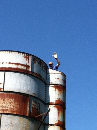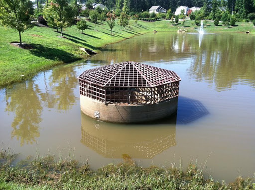 Yesterday, it was back out to the trail—this time with my friend Bridget "Suntigres" Langley—for five+ miles on the American Tobacco Trail over in Wake County. Before the hike, we stopped off for a couple of somewhat hairy ones: "UP" (GC20985; the silo in the pics above) and "Dr. Evil Visits Pittsboro" (GC1HQTK; the pond drain in the pics below). The rigors of getting to the caches weren't all that bad; it was more dealing with all the black widows, which seem to have undergone quite the population explosion this year. I've probably seen more this season than in all my years combined. The most disconcerting was the one in the drain because it was hanging right from the cache itself. Fortunately, God made big sticks and left them lying around in drains for dealing with such complications.