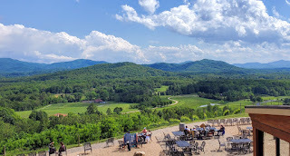 Last week was my birthday, this week is Brugger's birthday, and a while back, we figured we needed to celebrate these dastardly days...somewhere, somehow. She recently had fairly serious surgery, and even while recuperating, she's been working her ass off on several freelance projects; so, we decided it was only proper to collaborate with our regular traveling companions Terry & Beth and plot an outing together. We settled on Virginia's Shenandoah Valley, a few hours north of home, where the scenery is beautiful, the mood is mellow, and the wineries, distilleries, and breweries are plentiful. Our destination: a lovely VRBO at the Wintergreen Resort , which Terry located for us. Wintergreen is best known as a ski resort, but off-season, it turns out to be very affordable and hardly any less beautiful than under a coating of snow. Thursday, May 8, 2025