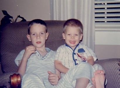 Brother and I had a fairly idyllic childhood, and we got along in the typical way of siblings with an age difference of several years. One of my favorite recollections of brotherly love was when I was 11 or 12, which put him at 6 or 7. Our parents had finally warmed to the idea of letting me stay alone with him for fairly short periods. One night, they went out and left me in charge for about an hour, after which a young lady named Sherry was to come round to babysit us for the rest of the evening. During that hour, due entirely to circumstances beyond my control, I locked Oolie-Poolie out of the house. Before I knew it, a brick came crashing through the backdoor window. Against my better judgment, I let him back in so he could clean up the glass. At this point, marginally peeved, I threatened to stab him with my pocket knife. I ran my thumb along the blade to test its sharpness (I mean, who would want to stab his little brother with a dull blade?), and in the process sliced my finger wide open. So, for a fair spell, I stood there, fussing and bleeding, trying to make sure he understood that his behavior was unacceptable. Soon enough, Sherry arrived to find a broken window, a brick, and a mess of glass and blood in the floor. She bandaged my gaping wound, taped Saran Wrap over the door’s, and told us she never wanted to see either of our faces again. (This was not true, of course; she babysat for us many times in the coming days, and only rarely did Oolie-Poolie cause as much trouble as on that particular night.) Once reconciled (all thanks to Sherry), brother and I devised the perfect alibi: we decided to blame the property damage on Dwayne Sigmon, our mortal enemy from the neighborhood. So, first thing next morning, when pressed to explain events, I told my understandably irate Mum and Dad that Dwayne had come out of the woods and heaved a brick through our backdoor window.