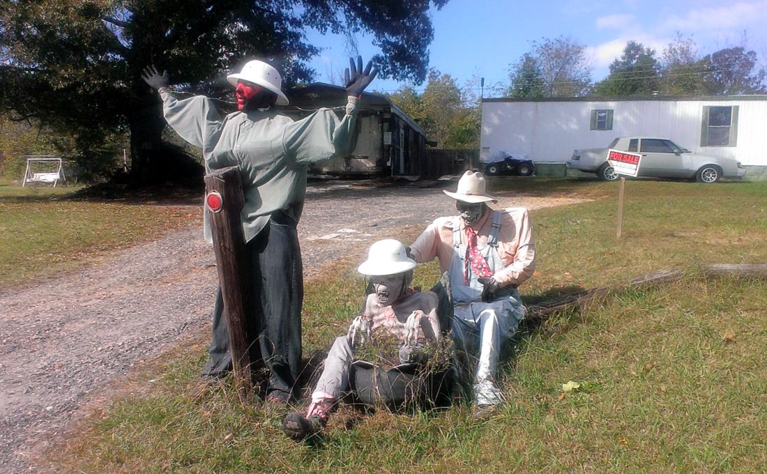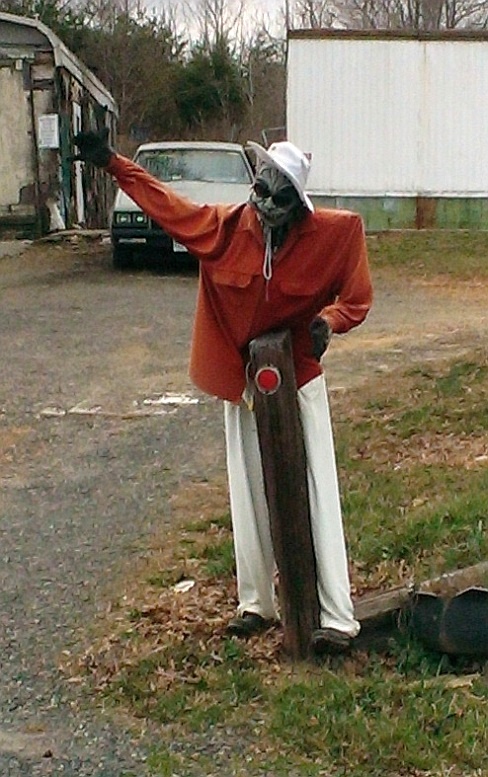 Why, yes, I am suffering the great sadness, for the Sandy Level Creep is no more. For the past five years or so, he — and, more recently, a handful of companions — stood alongside the Old Axton Road in southeastern Henry County, VA, happily greeting passing motorists. For some long while, I had seen a "For Sale" sign outside the house where he lived; it always brought on a twinge of sadness and apprehension. The Creep was a bleepin' Sandy Level fixture! But back at Thanksgiving, when I didn't notice that gaggle of scary folk hanging out by the road, I feared the worst had happened. Sure enough, my past few trips through Sandy Level appear to confirm that my good friend, the Sandy Level Creep, is indeed gone.