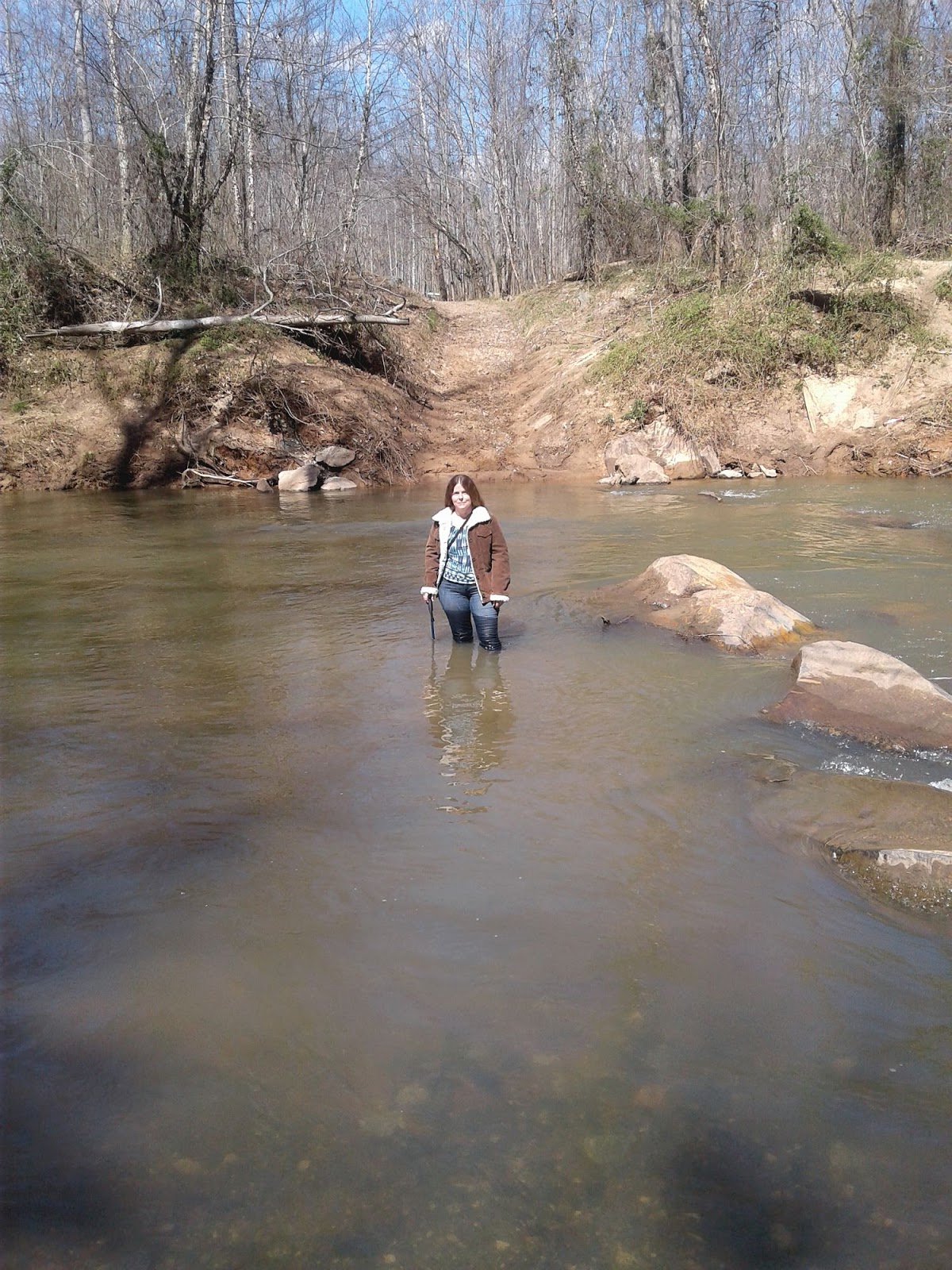 It's always nice to have an extra day off after a long trip. Inevitably, I end up with a bunch of business to catch up on (much of it my mom's), including some serious catch-up writing, but it's always gratifying when I can work in a spot of geocaching. Though it was a bit chilly, today turned out to be the perfect day to get out after some hides, especially since a few new ones published over the weekend while Ms. B. and I were gone to Ohio (see yesterday's blog, "A Head Full of... Winklepleck?!" ). Not to mention that, for months now, I've been hoping we might have at least a few days where the sky wasn't taking a dump so they would open the Reedy Fork Creek river crossing at Northeast Park . I have a cache — Destroy All Monsters #2: Angilas ( GC25CYB ) — that was reported as needing maintenance months and months ago, and because there's no bridge across Reedy Fork Creek (one must either hop across on rocks or wade) and the trails have been closed, I've been unable to get to it. Plus, my nemesis — a cache called "Out on the Brown Loop Trail" ( GC7V4YH ) has lurked out there since last July, having defied my one attempt to find it soon after it published.