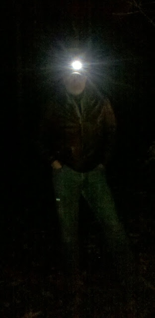Whenever I know in advance that a geocacher—or group of cachers—intends to hunt one of my night caches, I oftentimes go out walking with them. For my part, I get to check on the general state of things and enjoy a night in the woods; the hunters have the advantage of the cache owner being on hand to steer them completely wrong along the way. Oh, did I say "advantage"? I might have meant "handicap."