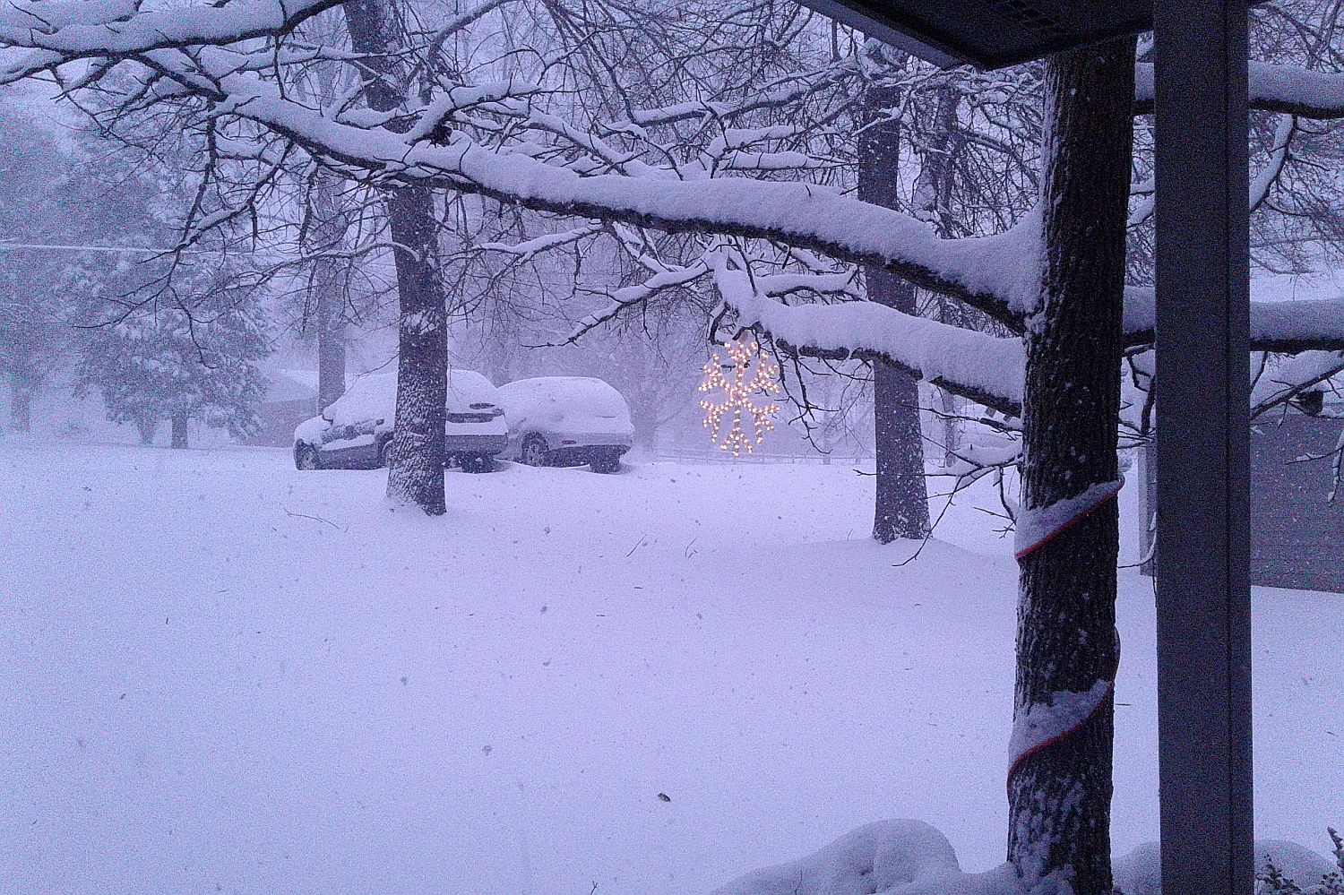 It's getting darker and deeper out there even now. The big old flakes are back. I'm stocked up with supplies, but I so hope to keep power through all these. Else it's gonna be a cold, cold time.