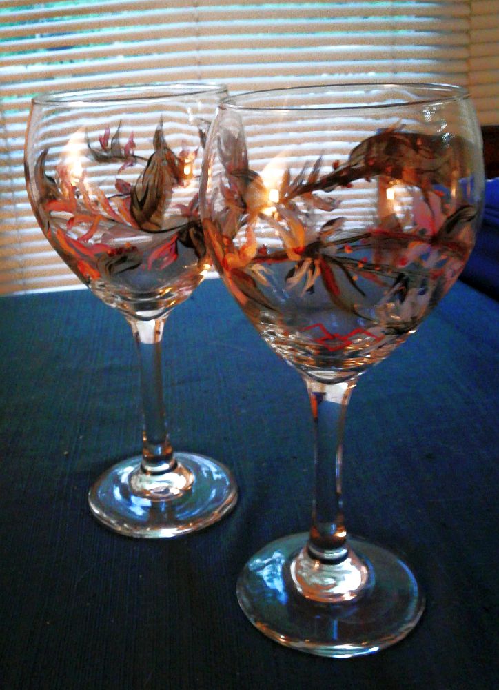 I had plotted something of an early birthday surprise for Ms. B., so on Friday, she and I went to Martinsville where she was treated to a wine glass painting class at Piedmont Arts Association (where I once exhibited and taught art back in the dawn of man). For good measure, I joined her in this endeavor, and we painted ourselves some nice wine glasses, which I'm certain will be put to good use. We also got to drink wine and eat good food at the event, so there was happiness to go around.