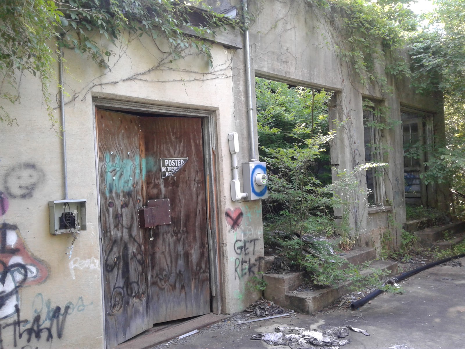 The facade to the Pit of Shoggoths, with its mysterious brand-new electric meter