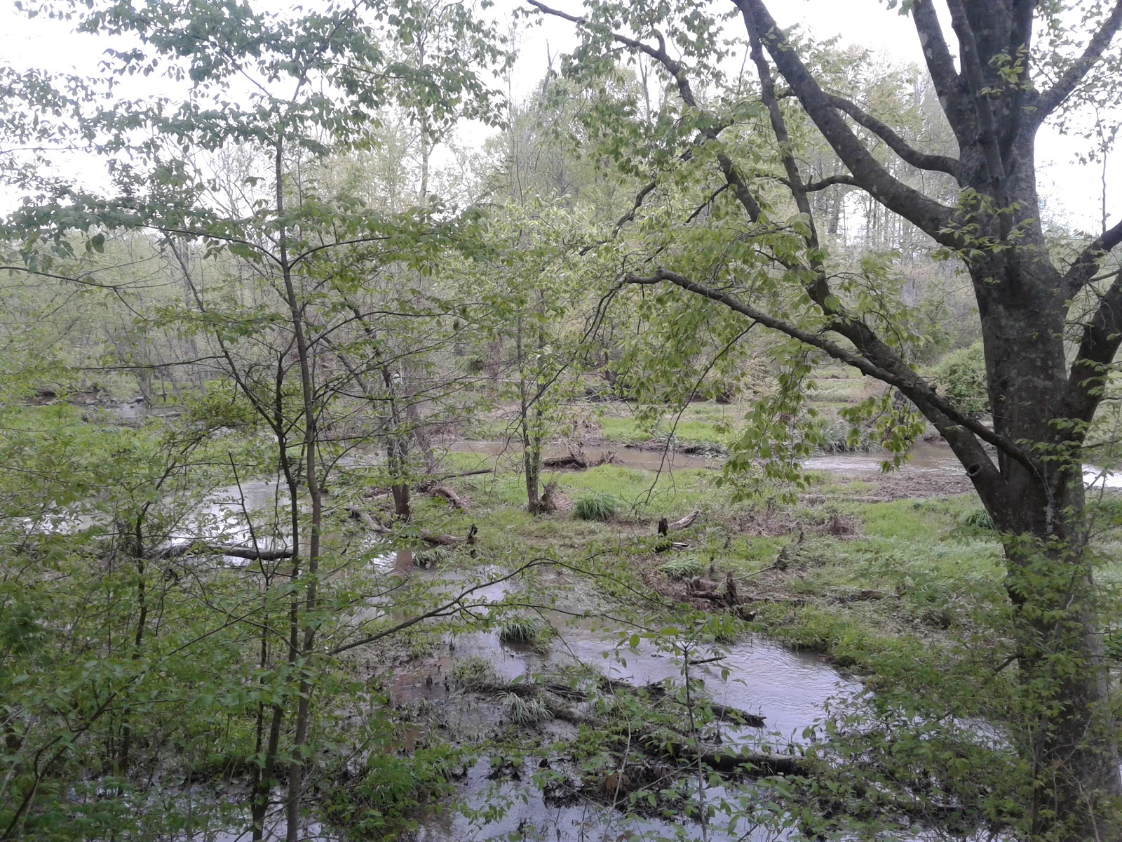 I'm steadily closing in on 10,000 geocache finds. Claimed six today, bringing my total count to 9,976. Ms. Brugger and I are making plans for a fun weekend together on May 12–13, at which time I plan on making the big 10K find. Got the trip plotted, and we almost have a backup plan, just in case....The mysterious madman known as Government Mule has put out several more caches near Hagan Stone Park in southeast Guilford County, this time at the relatively new Company Mill Preserve , which adjoins the Hagan Stone property. Company Mill comprises 240 acres — mostly wetlands — and includes two lengthy nature trails. A couple of weeks back, I had challenged (and occasionally tortured) myself chasing down some of Government Mule's other caches (see " From Hagan Stone to Transylvania "), and today I discovered just how much wet there is in the wetlands. Short answer: a lot.
