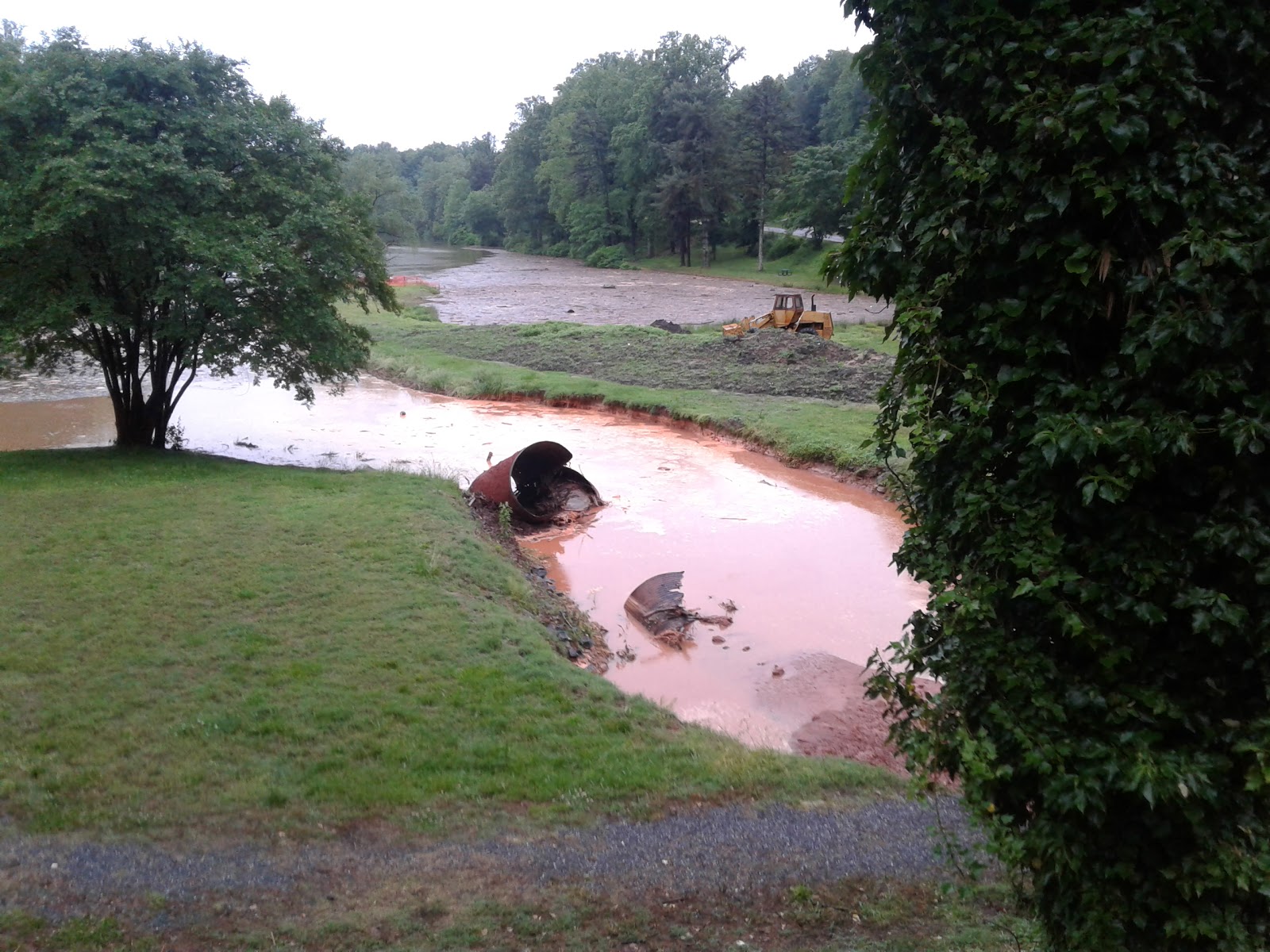 In my damn-near six decades of existence, I have never seen water hit my old hometown of Martinsville, VA, the way it hit this afternoon. I was driving up from Greensboro after work for my regular maintenance visit with Mom, and I'd heard just before I left there was a flash flood warning in Martinsville. The rain was coming down in buckets, but I didn't run into the floodwaters until I reached the city limits. On U.S. 220, I encountered several stretches with water a foot deep, and on Spruce Street, just before entering our neighborhood, I came upon a hundred-yard section of road under a couple of feet of water. A few cars approaching from the opposite direction plowed through it by driving down the center of the road, which is what I ended up doing—but if the water had been even a few inches deeper, I might well have ended up stranded. From there, the road appeared clear, and I stopped for some Chinese food to bring home for our dinner. It was only on that last mile that the extent of the flooding became clear.The creek that runs along Indian Trail was swollen beyond anything I'd ever seen. The stream runs through a little gorge anywhere from 10 to 30 feet below the road level, and in places, the water had risen to the point it was washing over the road. At a small apartment complex on the corner of Indian Trail and Prospect Hill, the parking lot was flooded, the water level above the tires of the parked cars. Several broken trees lay next to the road but did not present a hazard. However, about a quarter mile from Mom's, a city vehicle was blocking the road, and an officer was turning back cars traveling the same way as me. He told me a tree had fallen across the road just past the electrical substation—the lot next to ours—and beyond that, down by Lake Lanier, the road was under water. I told him I only had to go one lot past the substation and I'd take my chances, so he let me through.