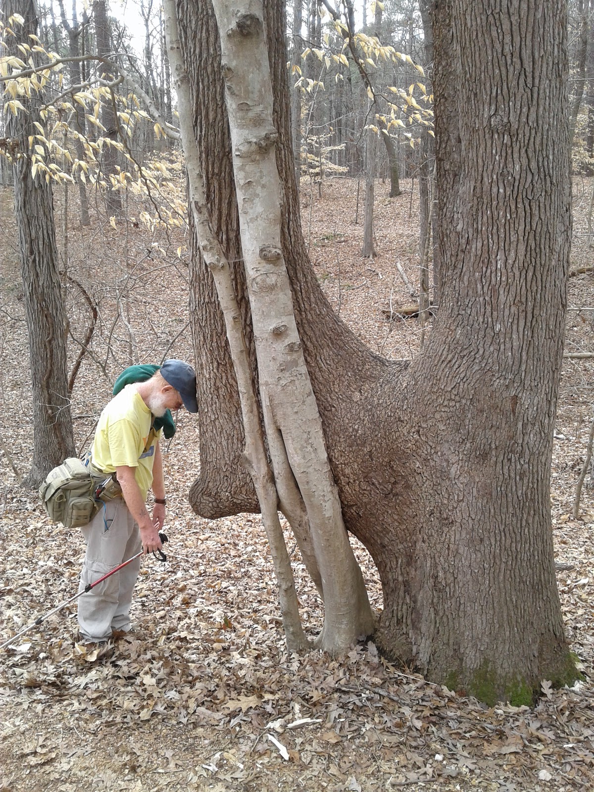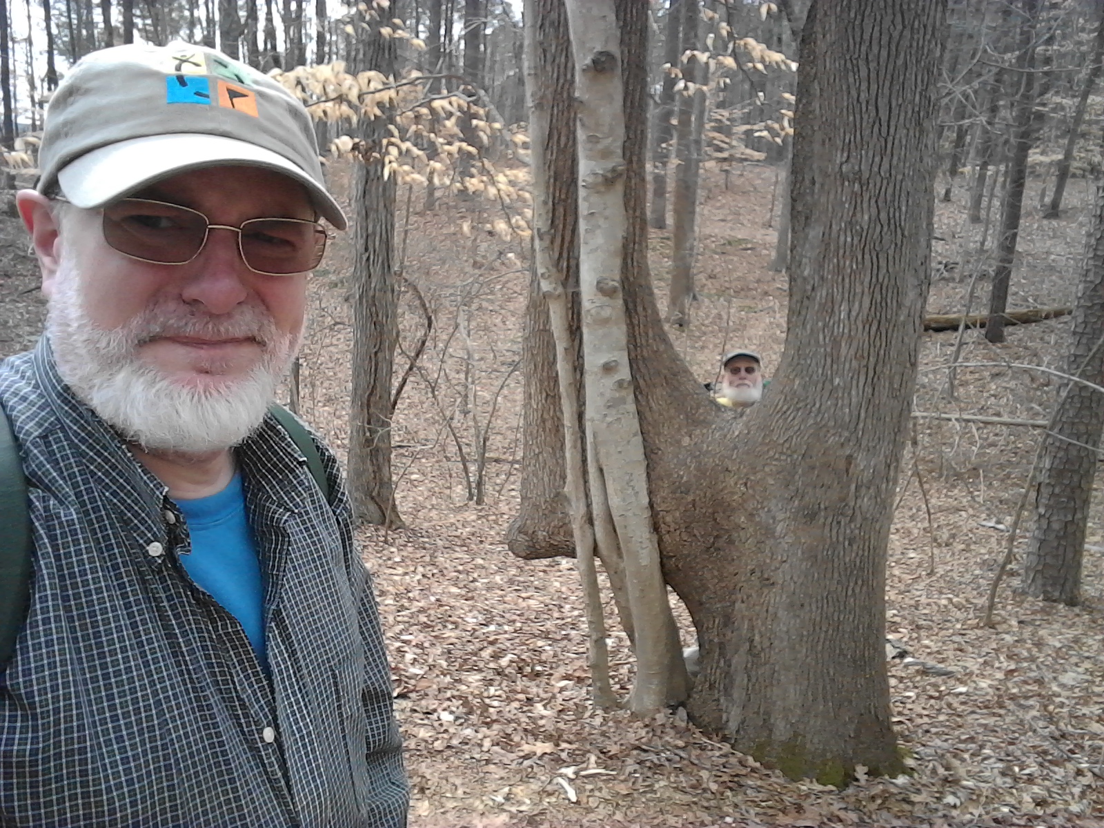 It's not just ugly tree — that is photobombing UGLY tree!Too long it has been since Old Rob and I took a wee trip out of town to hunt geocaches, so since I was off work today, Old Rob and I took a wee trip out of town to hunt geocaches. The Lake Crabtree area, near Cary, NC, was our destination, for there one can find a plethora of trails and caches... or, as in a couple of instances for us, just trails.