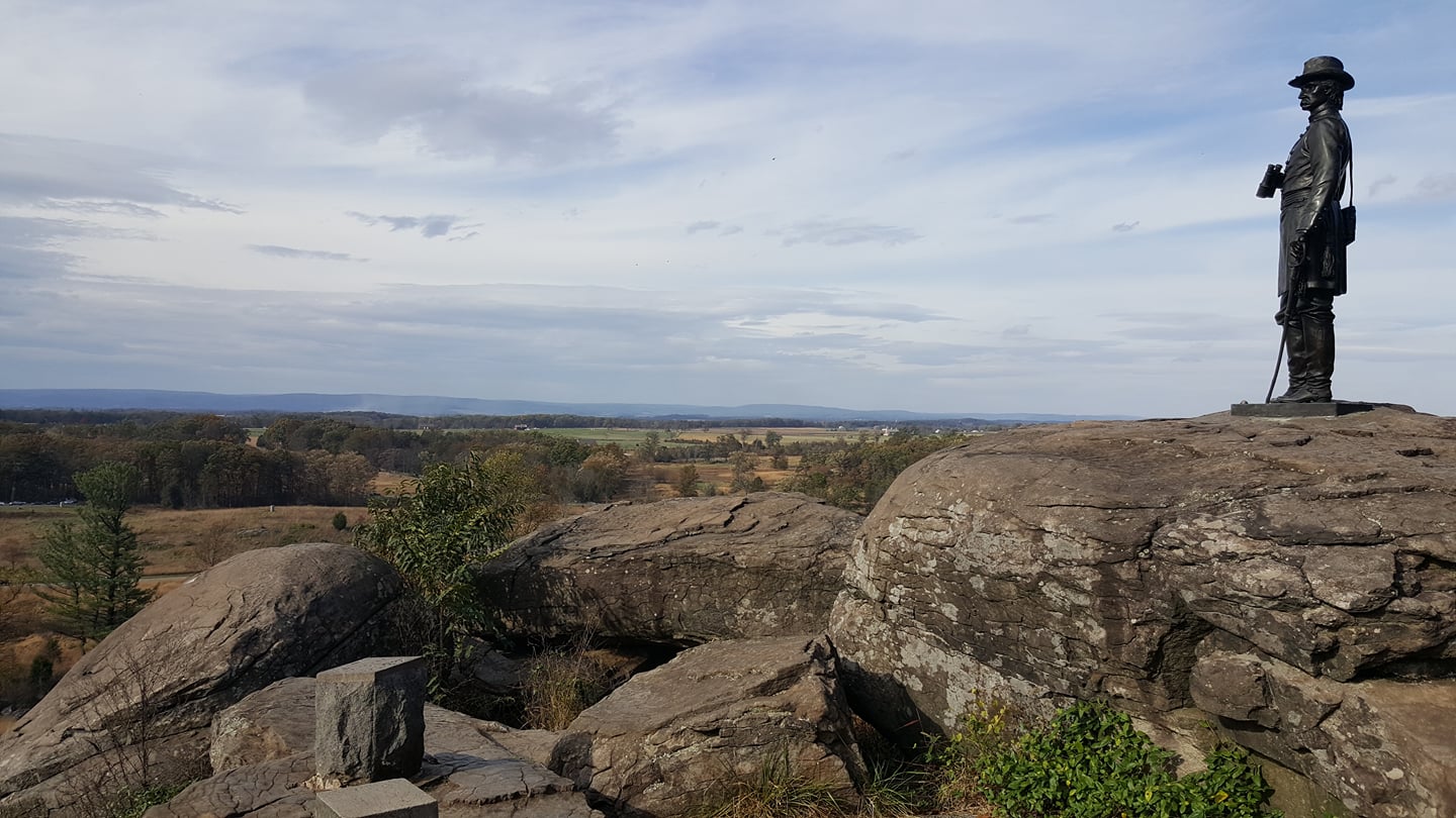 Somber. Whimsical. Intriguing. Hysterical. Profound.That was our trip to Gettysburg, PA, this past weekend. Generally around Halloween, Ms. Brugger and I go haunt someplace for a few days, and this year we decided Gettysburg would be the place, as neither of us had been there, and it appealed to our mutual love of history, beautiful settings, and autumn. It proved perfect beyond our expectations.