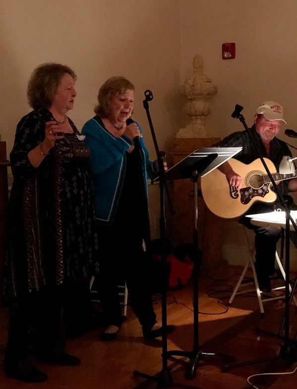 Once again, my guitar and I made an appearance, this time for three songs—two originals ("My Loves Goes On," "Today Is for You") and one cover ("Hold On" by Ian Gomm)—and lord knows how, I once again escaped without suffering retribution from an aggrieved audience. This may be due, at least in part, to the fact the sound didn't carry all that well to the far corners of the sizable room, and thus those who weren't directly in the line of fire escaped the full impact of the assault. My performance, such as it was, opened for a beautiful set of songs by the ever-talented McCray sisters and Rick Godbee. And then there was joyous dancing (at least from some, not necessarily the old dude) and general merry-making with tunes blasting from DJ Tim Pharr's sound system.