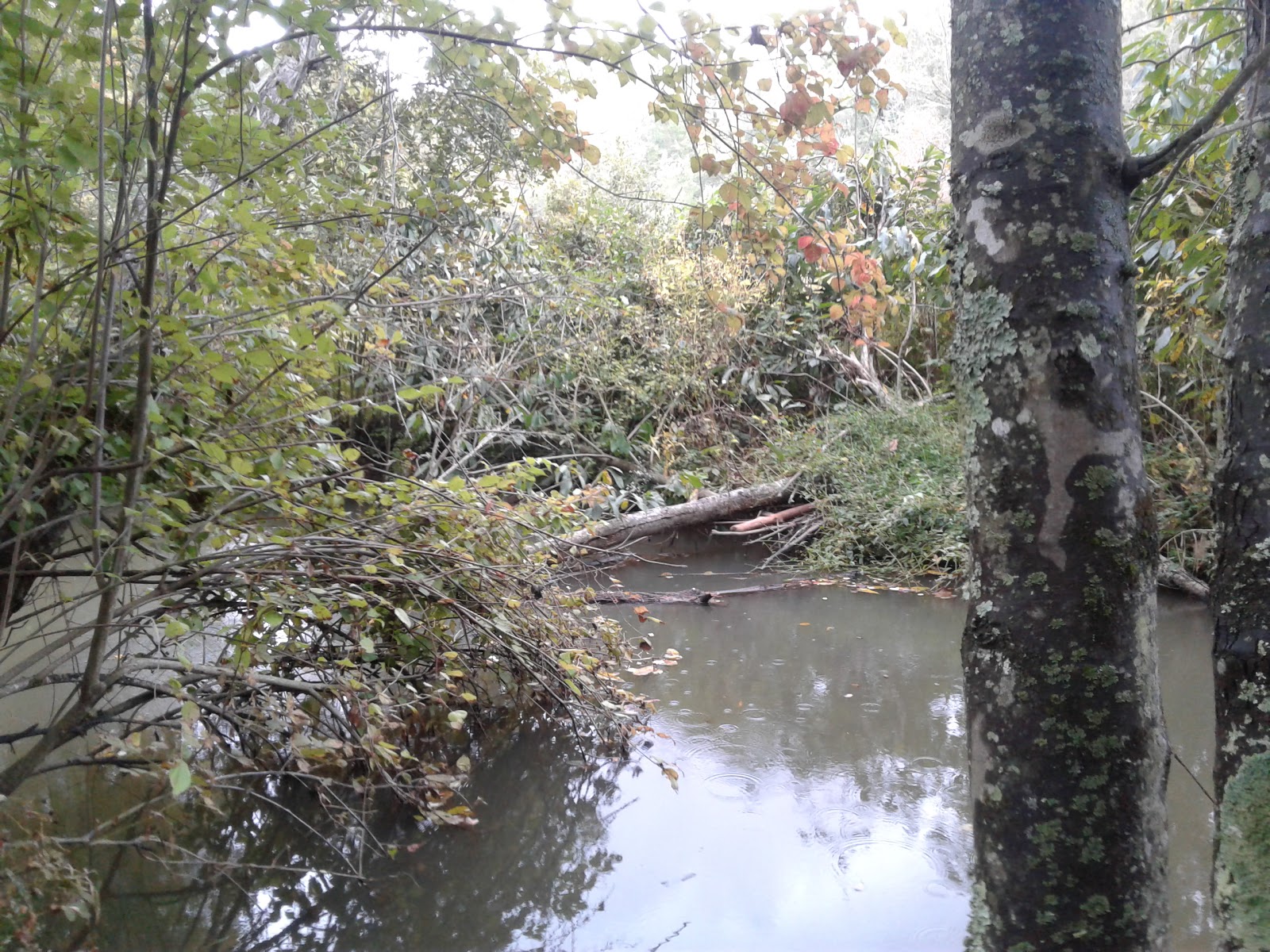 I had just regained solid ground when the rain started. Not a gentle, pitter-pattering rain, but the gullywasher from hell. So I got my stuff together and made my egress, steering way clear of the swamp and the quicksand, which meant a much longer bushwhack, but at least this time on solid ground.