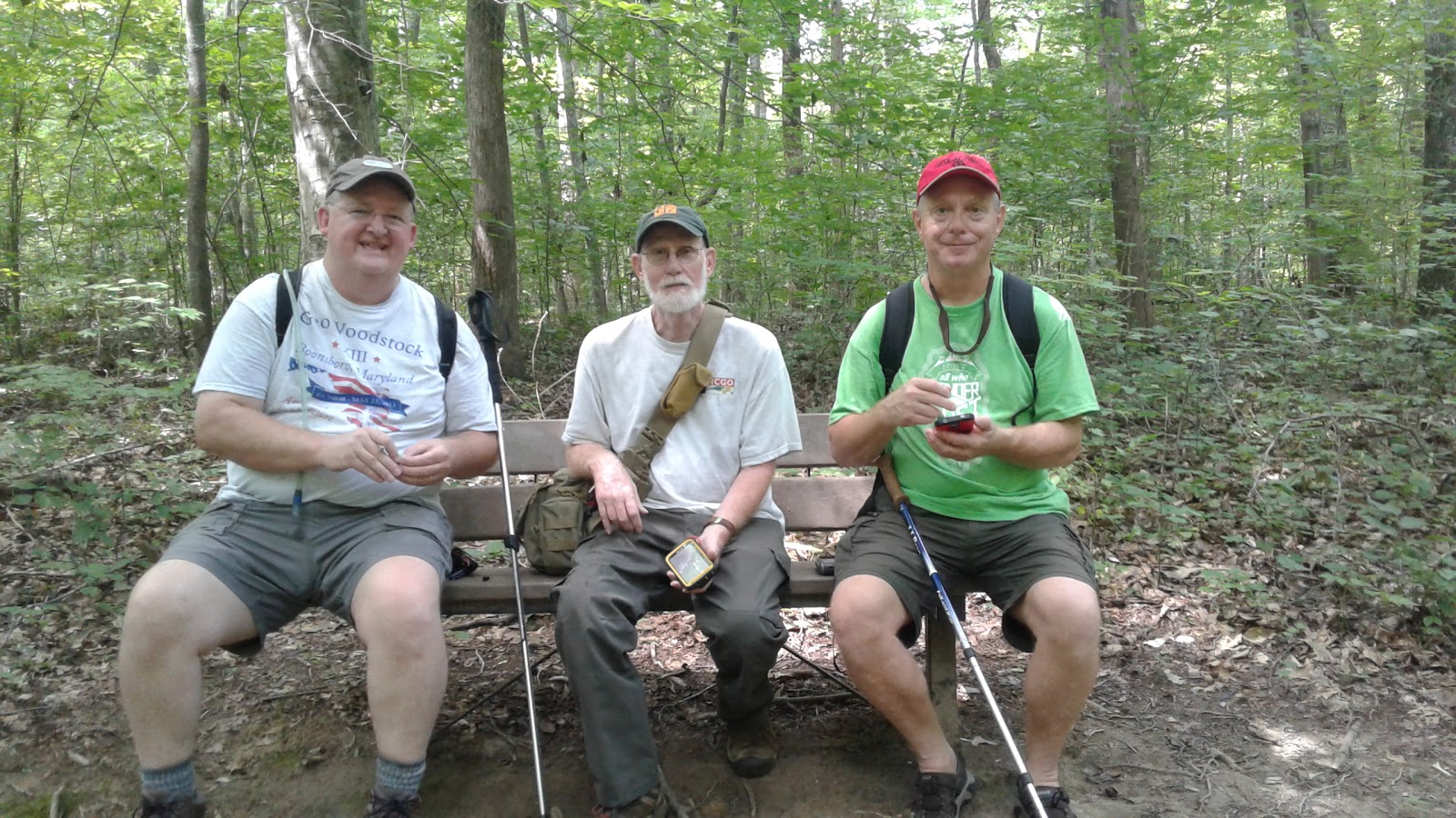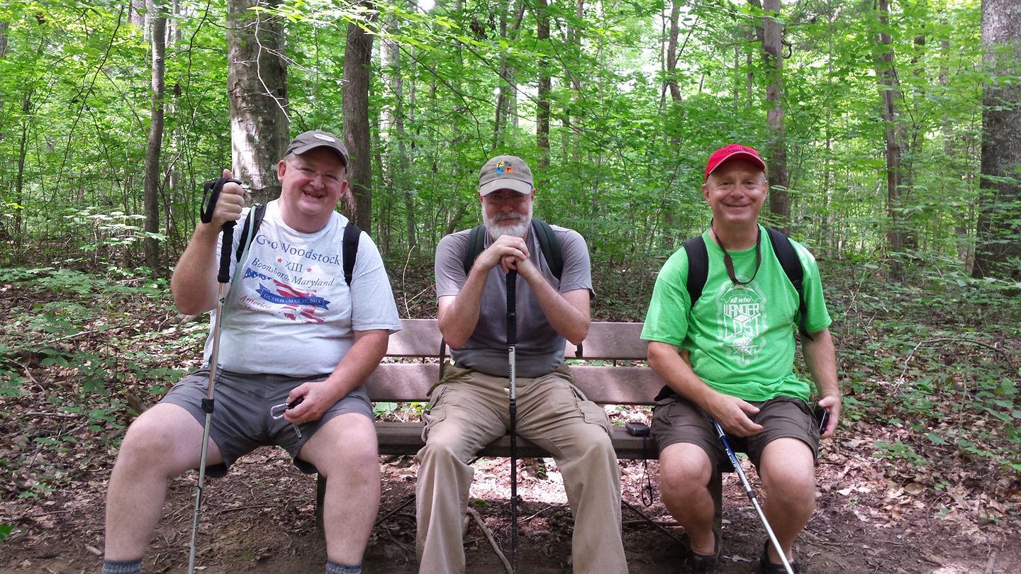 Team 2-1/2 Men: BigG7777, Suntigres, Old RodanJust about every year since I began geocaching (2008), on or about the July 4th holiday, it has been a personal tradition—nay, a personal requirement—to celebrate my freedom to scrawl my John Hancock on the log sheets of as many hidden little containers as a satellite signal will guide me to. Today was no exception, with an entertaining venture into the forgotten wilds (i.e., at least ten miles from the nearest wine bar) of Forsyth and Davidson Counties, with caching partners Bridget (Suntigres) and Gerry (BigG7777). Most caching outings are fun; this one was memorable. Mainly, today I found cache #9,500, which means I have a mere 500 to go before the big 10K. Later this year, perhaps...?