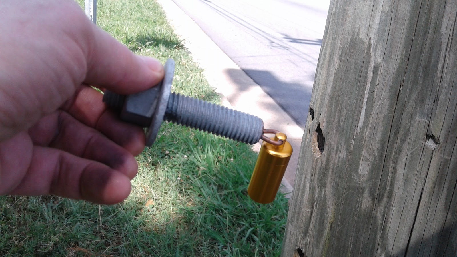 One of my favorite caches of the day, hidden in a hole in the telephone pole
