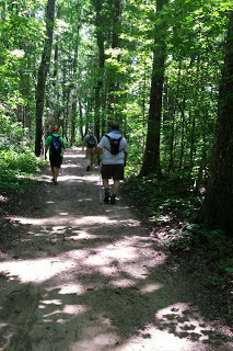 We expected a miserably hot day, and make no mistake, the temperature got a good ways up there, but it was hardly as awful as it has been recently, especially in the humidity department. At times, we even had a pleasant breeze blowing. We found a good variety of cache hides—some micros, some big honking ammo cans, some well-camouflaged, some just for the numbers. Individually, each of the Old Farts made a good showing, with no one earning the Dead Weight Award today. Inside the park, we put in about a five-mile hike and found 13 of the 14 caches we hunted. There's a fair chance the one we didn't find is simply missing, but nonetheless it can be frustrating to look at the geocaching map and see among all those smileys one ugly, bitchy, flingin'-flangin' sucky unclaimed cache.