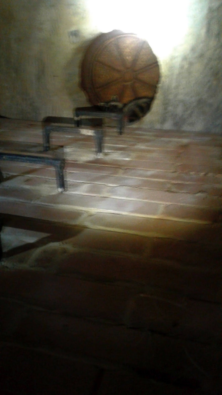 At the next junction, the pipe got narrower, resulting in more than a few conked noggins, and the going became a bit slower. Then, stepping into the chamber at the next junction, I glanced up and, sure enough, there was our raccoon friend lounging on the rungs of the ladder. We exchanged a few pleasantries, and I wanted to name him George and hug him and pet him and squeeze him, but mean old Uncle Bloody Rob said no. C'mon, jeez, just because the little fellow had sharp teeth and claws...? I took a couple of photos of George, but they ended up blurry because I was also trying to hold the flashlight and keep from slipping and falling in the cramped chamber. That's him hanging out at the manhole cover in the accompanying image. (You can click on these to enlarge.)