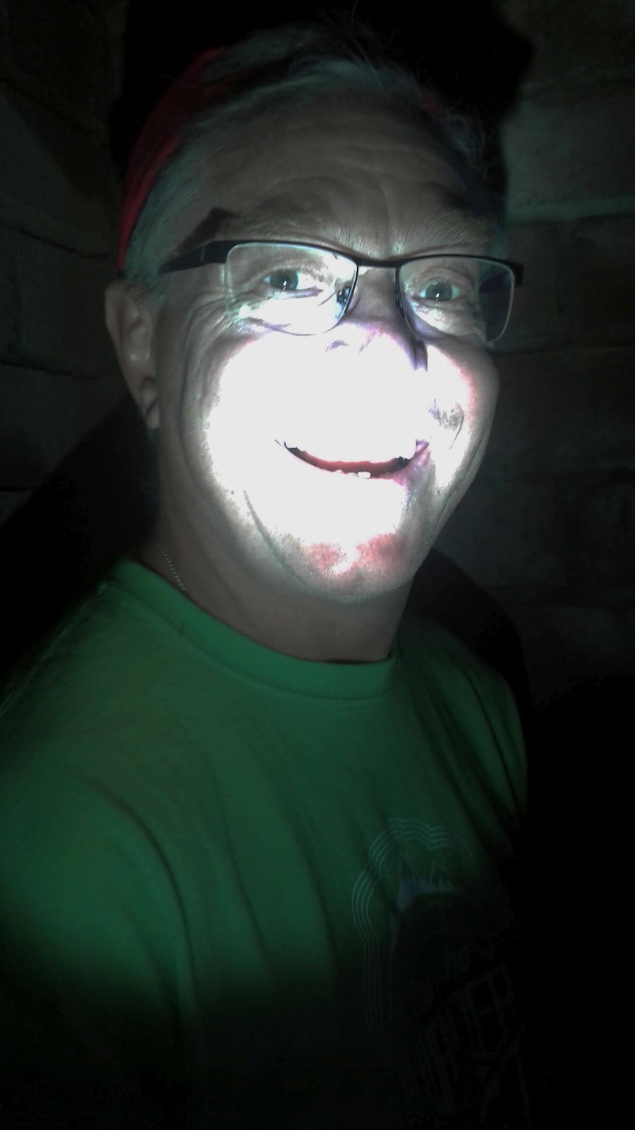 "Hello? Is it me you're looking for?"Anyhow, we still had a ways to go, and this pipe was the smallest of all, necessitating either crawling or — as I did — lowering to one's haunches and shuffling along a hundred feet or so through shallow water.