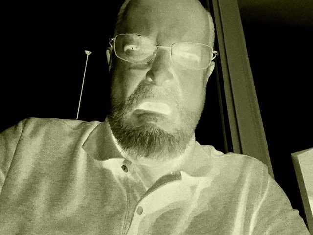 Naturally enough, the company of the world's best girlfriend, some good food and wine, and a spot of geocaching helped put the world back to rights, at least for the time being. Our monthly supper club gathering was Friday night at the Albaneses, where we had some of the best homemade larb gai I've ever tasted, decent wine, and some rip-roaring music. I won't admit to getting up and dancing, but there are those who might say that I got up and danced. They must have been drinking. In any event, I woke up yesterday morning with a bit of unusual muscle ache, so something untoward must have occurred. Joe was having fun taking portraits of our individual gang members and somehow, I came out feeling rather negative about it: