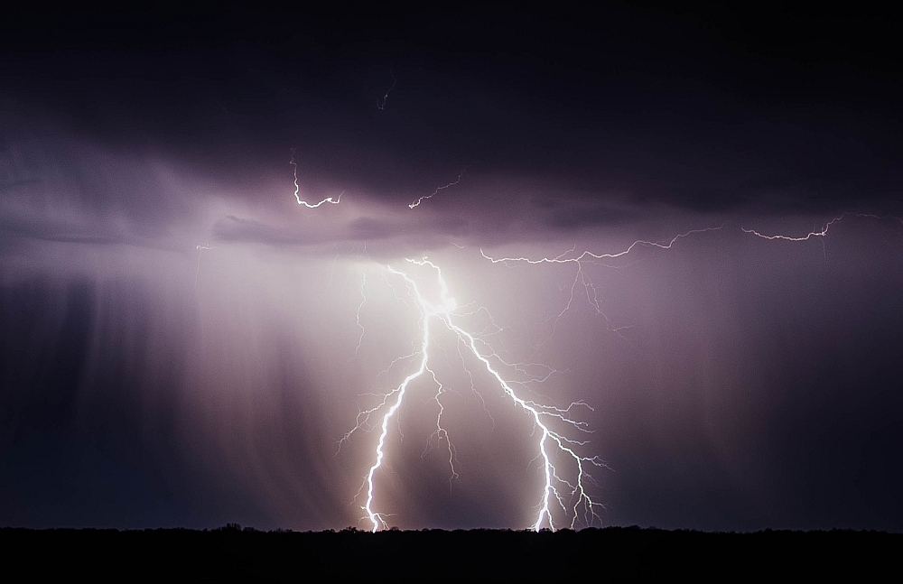 My God, I'd never heard anything like it. A brilliant light flashed in the corner of my eye, and when I looked around, a blue-white ribbon of electricity was corkscrewing around the trunk of a large tree about thirty feet from the shelter. With a sound like a 1,000-pound bomb going off, bark exploded in long, snakelike ribbons in all directions, some clattering down on the roof of the shelter.