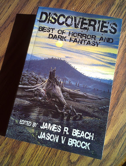 Received today: my contributor copy of the paperback edition of Discoveries: Best of Horror and Dark Fantasy from Dark Regions Press. This one features my pleasantly deviant little horror tale "Megan," which originally appeared in the mini-anthology Darker Discoveries in 2008. The new anthology, edited by James R. Beach and Jason V Brock, features stories from various Dark Discoveries Press projects, including the magazine, the newsletter, and the anthologies NW Horrors and Darker Discoveries .