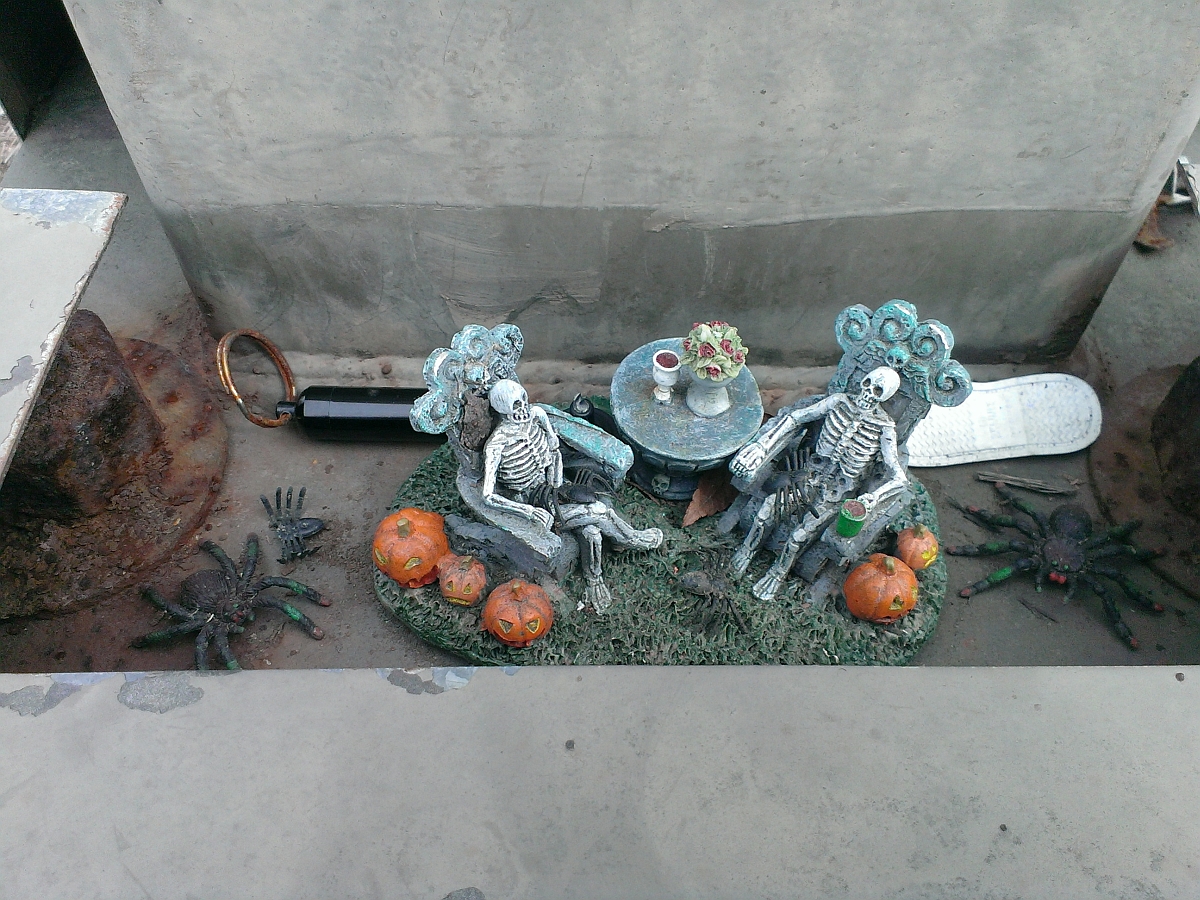 Yep, walking dead things in the woodsMost of the caches were of the park-&-grab variety, but there was one that took us into the woods off Lawndale Drive, with lots of tree frogs piping eerily, and something went tromping through the darkness nearby that gave Cupdaisy a start. And my favorite location was one that I didn't realize existed — an old, abandoned apartment complex some distance off the main road, which was pleasantly creepy, with old benches overgrown with weeds, trees growing out from a once-tended pond, and the sounds of wildlife singing and scurrying in the darkness. Once again, caching brings us to interesting, previously undiscovered places in our own own backyard. Happy day. Or in this case, happy night. I don't know if we'll managed anymore night outings in the area real soon, but this one sure was a treat.