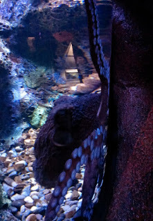 We spent a good couple of hours seeing the sights, the highlight surely being the pair of tigers who have a nice big area to roam and mingle with guests — well, almost. We were also quite taken with the pair of fishing cats, a passel of penguins, a bunch of otters, and stingrays of all sizes, which you can pet as they glide past through the pool. There's a huge octopus, which we were told only rarely makes an appearance, but it was kind enough to treat us to a brief appearance when it came out from its cover of rocks to check out the passersby. Bet he would have made for some serious tako-su at any of the nearby Japanese restaurants (octopus is one of my favorites, by the way).Out in the zoo area, there were several dinosaur-sized tortoises; a number of playful gibbons in the trees; some shy lemurs gathered together in a hovel and grooving on a pict; and a peacock strutting around the pedestrian walkways, which made me wonder whether we had stumbled onto the NBC lot by mistake.